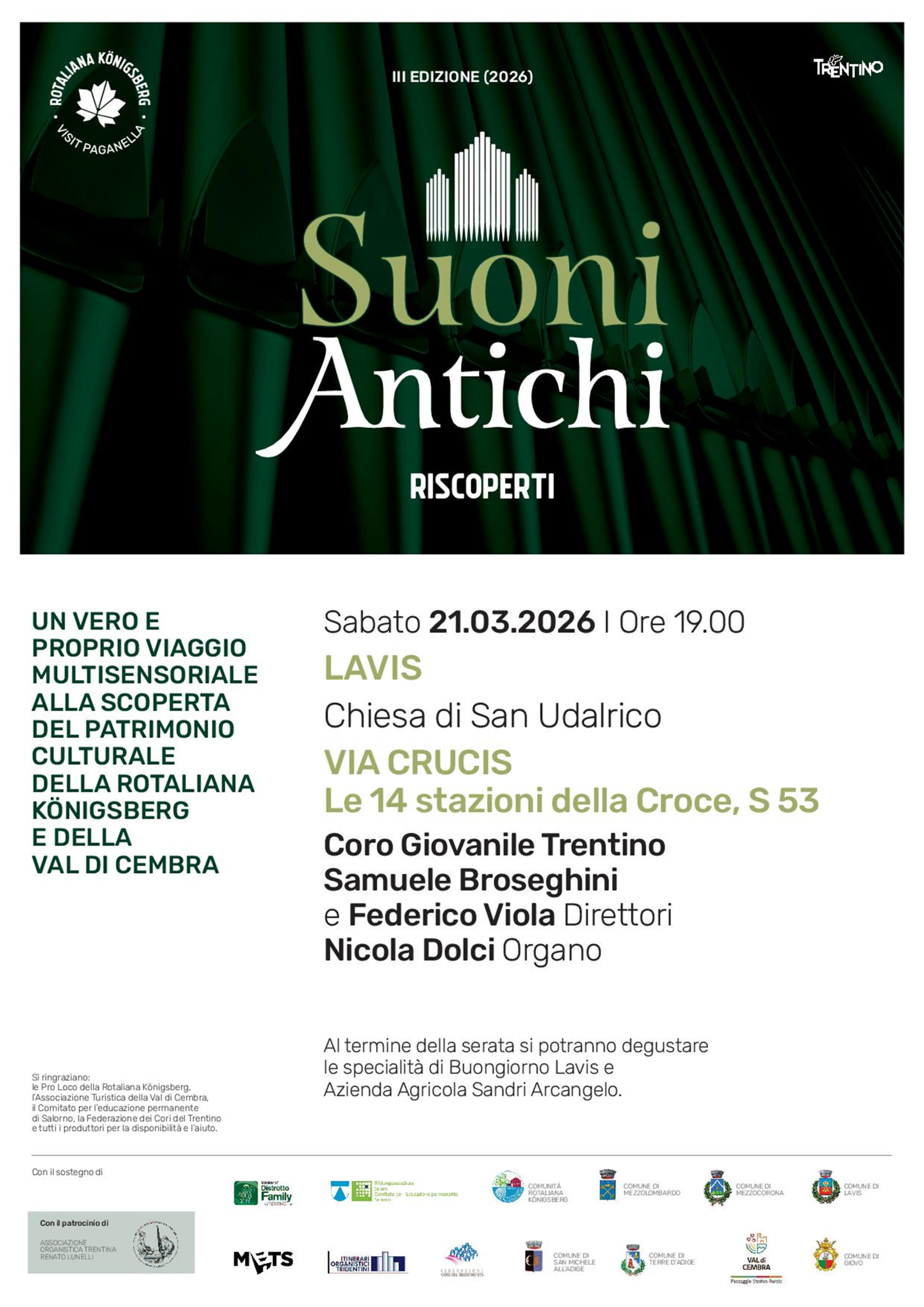 - Lavis, 21 marzo 2026 - prova e concerto a Lavis nell'ambito del festival Suoni Antichi Ritrovati