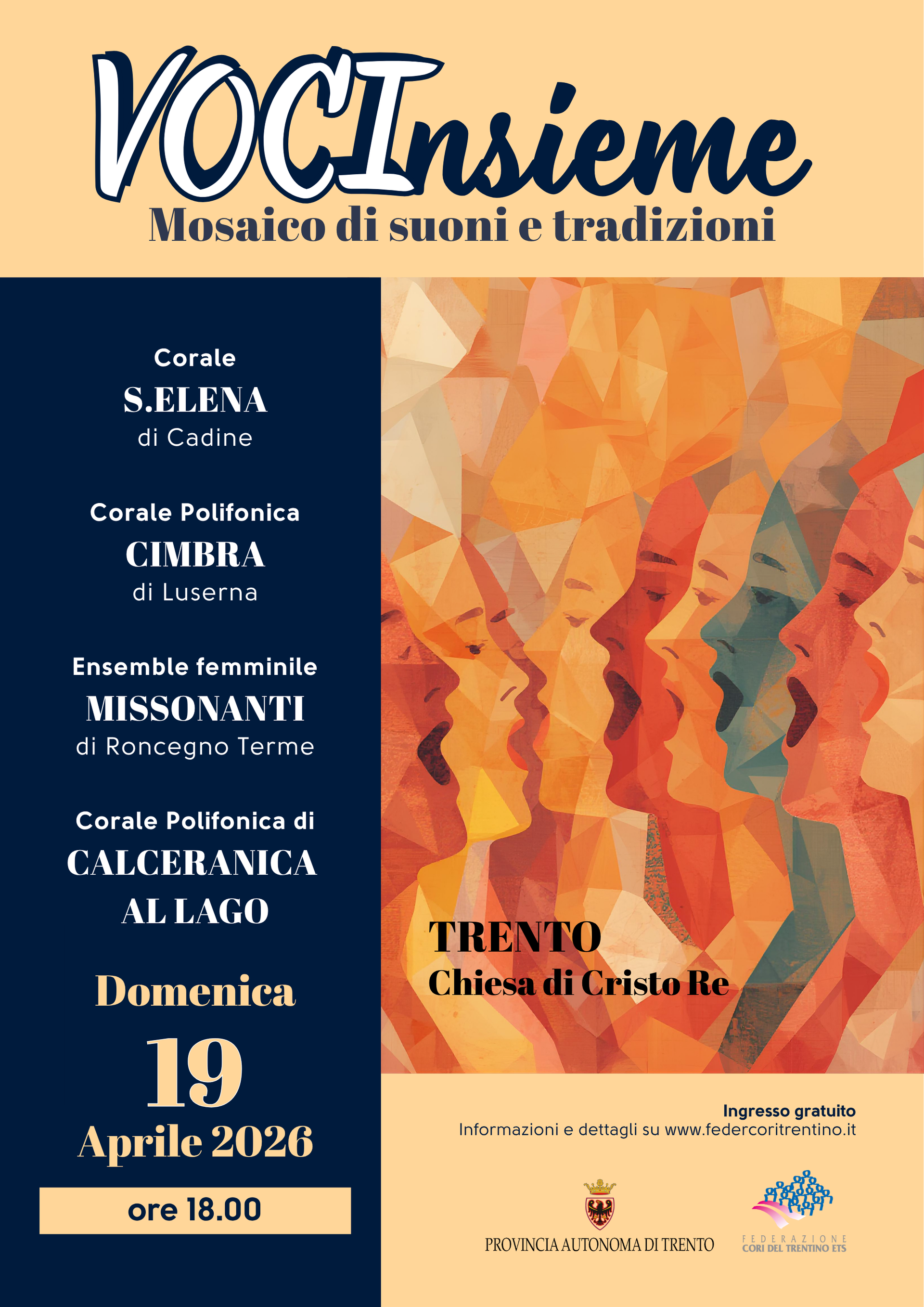 Come indicato con il programma annuale, condivisa con tutti i cori federati, in primavera è previsto un festival al quale possono partecipare tutti i cori trentini iscritti alla Federazione e prevede una serie di concerti dislocati sul territorio provinciale nel fine settimana 18/19 aprile 2026.